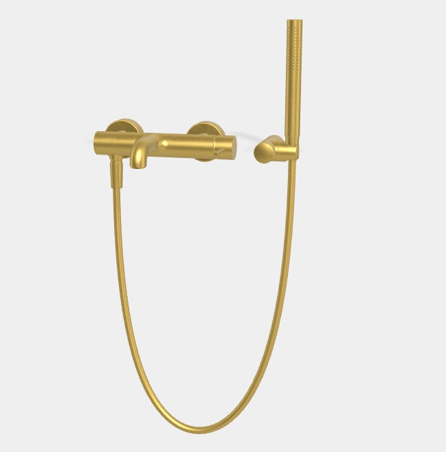 Смеситель для ванны и душа, Fima Carlo Frattini, Spillo Up, тип открывания воды-однорычажный, тип регулирования воды-керамический картридж, монтаж-настенный, отверстия для монтажа-3, вынос излива, мм-169, тип излива-неподвижный, ручной душ с защитой от извести анти-кальк-в комплекте, кнопочный переключатель, гибкий шланг хромалюкс, длина шланга, мм-1500, цвет-брашированное золото Смеситель для ванны и душа, Fima Carlo Frattini, Spillo Up, цвет-брашированное золото
