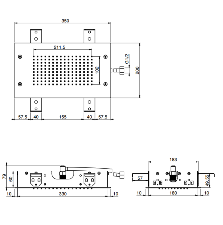 Верхний душ, Fima Carlo Frattini, Showerhead, тип установки-потолочный встраиваемый, размер душевого диска, мм-350*200, форма-прямоугольная, количество режимов-1, тип струи-дождь (Rain), материал-нержавеющая сталь, цвет-чёрный матовый Верхний душ, Fima Carlo Frattini, Showerhead, 350*200, цвет-чёрный матовый