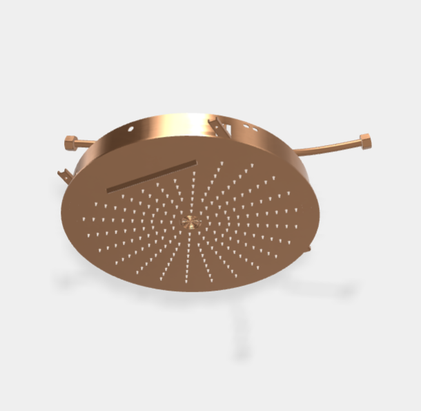 Верхний душ, Fima Carlo Frattini, Showerhead, тип установки-потолочный встраиваемый, размер душевого диска, мм-400*400, форма-круглая, количество режимов-3, тип струи-каскадная, ливневая, ламинарная, цвет-брашированная янтарная бронза Верхний душ, Fima Carlo Frattini, Showerhead, 400*400, цвет-брашированная янтарная бронза