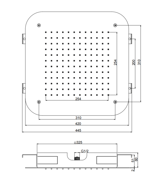Верхний душ, Fima Carlo Frattini, Showerhead, тип установки-потолочный встраиваемый, размер душевого диска, мм-420*420, форма-квадратная, материал-нержавеющая сталь, анти-кальк диффузоры, цвет-брашированный никель Верхний душ, Fima Carlo Frattini, Showerhead, 420*420, цвет-брашированный никель