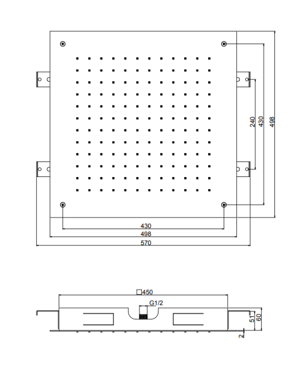 Верхний душ, Fima Carlo Frattini, Showerhead, тип установки-потолочный встраиваемый, размер душевого диска, мм-500*500, форма-квадратная, материал-нержавеющая сталь, анти-кальк диффузоры, цвет-черный матовый Верхний душ, Fima Carlo Frattini, Showerhead, 500*500, цвет-черный матовый