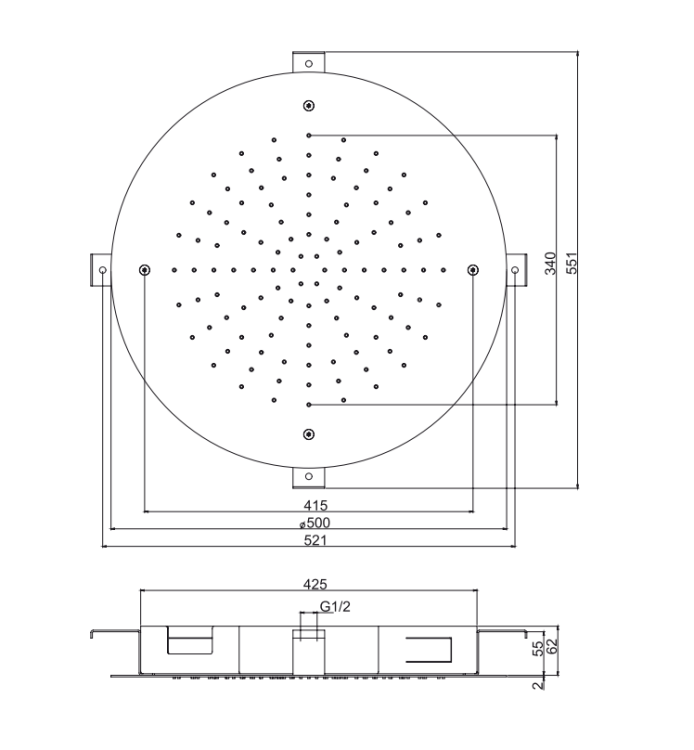 Верхний душ, Fima Carlo Frattini, Showerhead, тип установки-потолочный встраиваемый, размер душевого диска, мм-500*500, форма-круглая, количество режимов-1, анти-кальк диффузоры, материал-нержавеющая сталь, цвет-черный матовый Верхний душ, Fima Carlo Frattini, Showerhead, 500*500, цвет-черный матовый