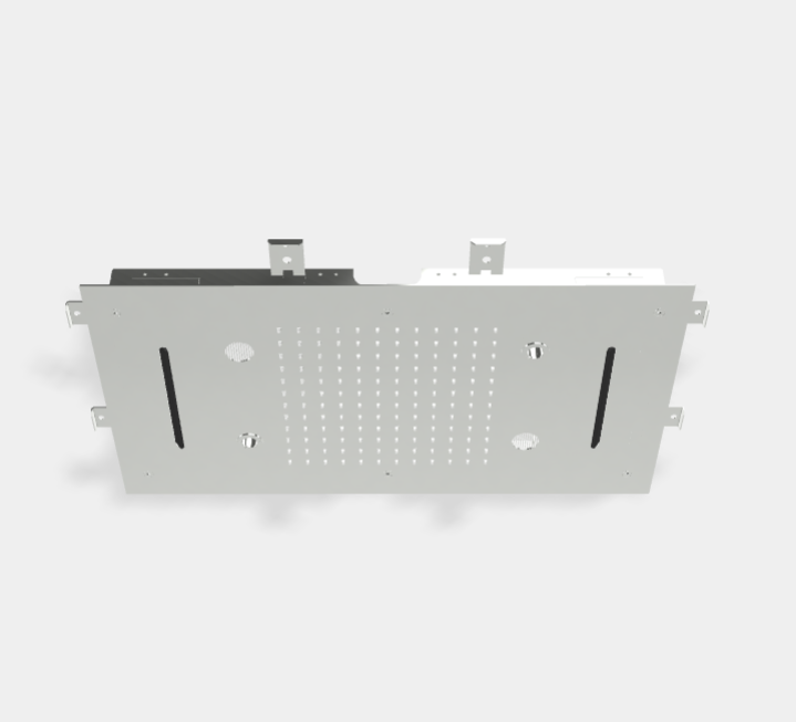 Верхний душ, Fima Carlo Frattini, Showerhead, тип установки-потолочный, размер душевого диска, мм-700*400, форма-прямоугольная, контроль хромотерапии с помощью пульта, анти-кальк диффузоры, 2 каскада, совмещение аудио/bluetooth (выбор музыки), блок контроля F2801, ливневая струя, LED подсветка для хромотерапии, доступны 8 цветов, цвет-хром Верхний душ, Fima Carlo Frattini, Showerhead, 700*400, цвет-хром