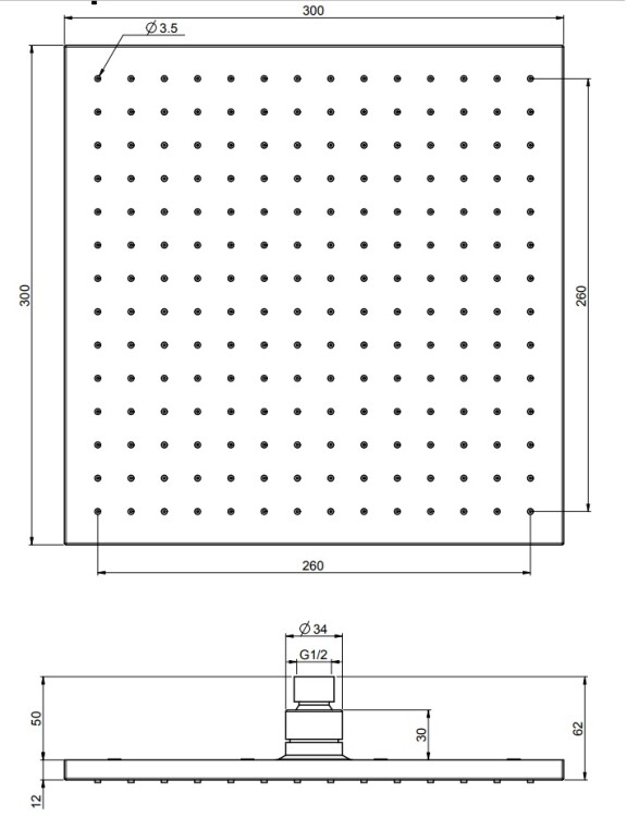 Верхний душ, Fima Carlo Frattini, Showerhead, тип установки-настенный, потолочный, размер душевого диска, мм-300*300, форма-квадратная, держатель-необходимо заказать, материал-латунь, цвет-брашированный шампань Верхний душ, Fima Carlo Frattini, Showerhead, шг 300*300, цвет-брашированный шампань