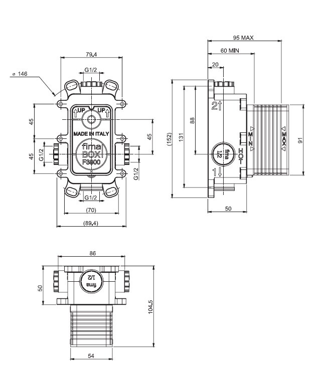 Внутренняя часть, Fima Carlo Frattini, Fimasmartbox, назначение-смеситель для душа, стандарт подвода воды-1/2" Внутренняя часть, Fima Carlo Frattini, Fimasmartbox, назначение-смеситель для душа