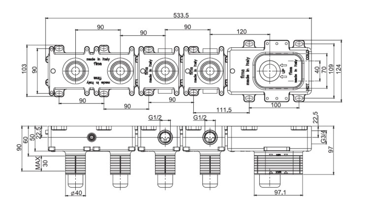 Внутренняя часть, Fima Carlo Frattini, Fimathermbox S, назначение-смеситель для душа термостатический Внутренняя часть, Fima Carlo Frattini, Fimathermbox S, назначение-смеситель для душа термостатический