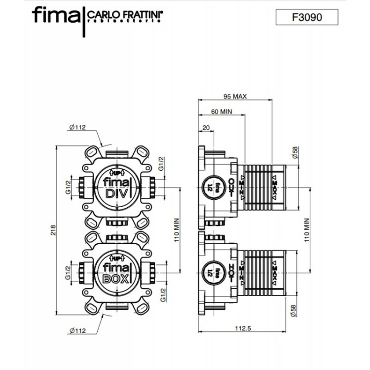 Внутренняя часть, Fima Carlo Frattini, назначение-смеситель для душа термостатический и дивертор с двумя выходами, стандарт подвода воды-1/2" Внутренняя часть, Fima Carlo Frattini, назначение-смеситель для душа термостатический и дивертор с двумя выходами