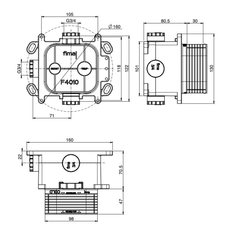 Внутренняя часть, Fima Carlo Frattini, Switch, назначение-смеситель для душа термостатический, стандарт подвода воды-3/4", не окрашен Внутренняя часть, Fima Carlo Frattini, Switch, назначение-смеситель для душа термостатический, не окрашен