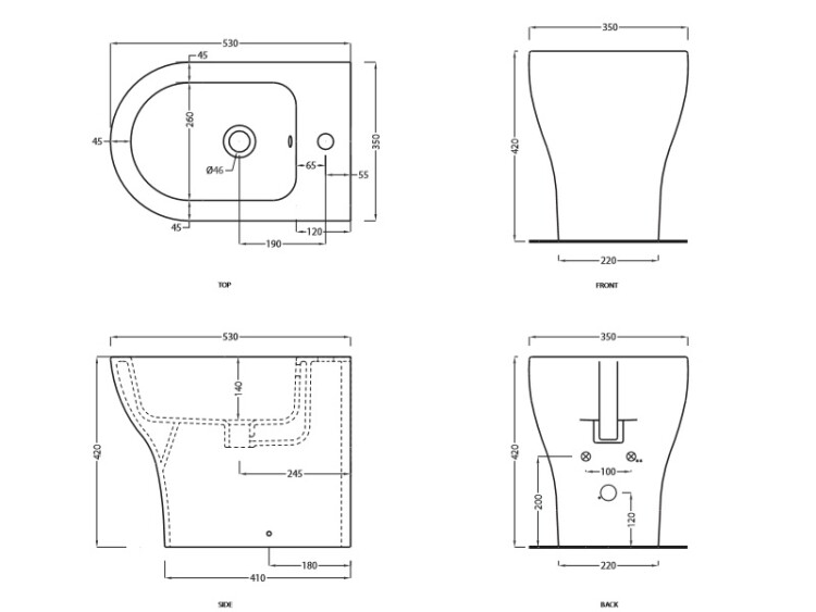 Биде, CIELO, Enjoy, тип установки-напольный/пристенный, ширина, мм-350, глубина, мм-530, высота, мм-420, форма чаши-овальная, отверстия для смесителя-1, материал-керамика, крепления в комплекте, цвет-Basalto, c переливом Биде, CIELO, Enjoy, напольный/пристенный, шгв 350*530*420, цвет-Basalto