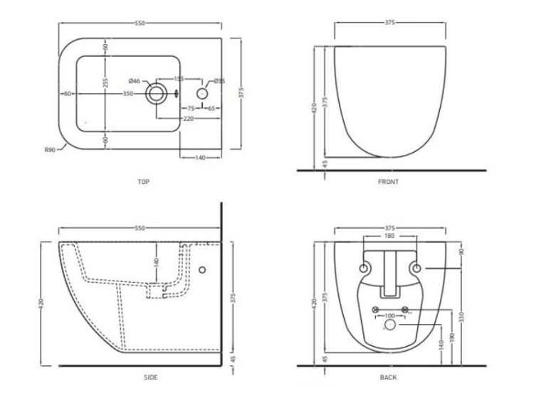 Биде, CIELO, Shui Comfort, тип установки-подвесной, ширина, мм-375, глубина, мм-550, высота, мм-375, форма чаши-прямоугольная, отверстия для смесителя-1, материал-керамика, крепления в комплекте, цвет-Talco, с переливом Биде, CIELO, Shui Comfort, подвесной, шгв 375*550*375, цвет-Talco