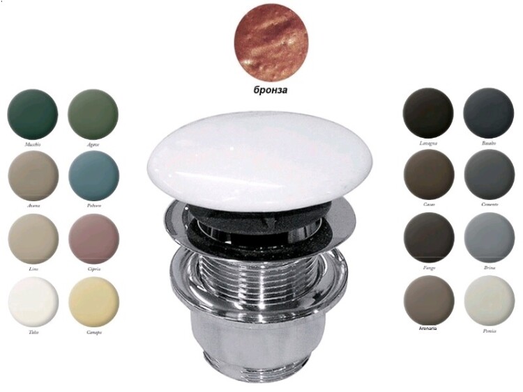 Донный клапан, CIELO, 1 1/4, диаметр, мм-72, универсальный, тип-Clic Clac, форма крышки-круглая, материал-латунь, цвет-бронза, с керамической крышкой, цвет крышки-Polvere, Донный клапан, CIELO, 1 1/4, диаметр, мм-72, универсальный, цвет-бронза/Polvere
