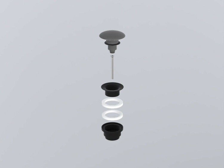 Донный клапан, CIELO, универсальный, Click Clack, 1 1/4", форма крышки-круглая, диаметр крышки, мм-72, материал крышки-керамика, отделка клапана-черный матовый, цвет крышки-Cemento Донный клапан, CIELO, универсальный, 1 1/4", цвет-черный матовый/Cemento
