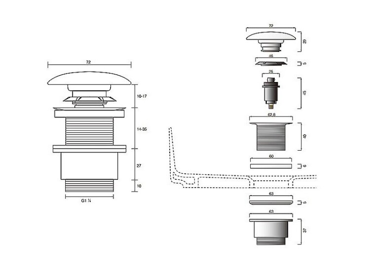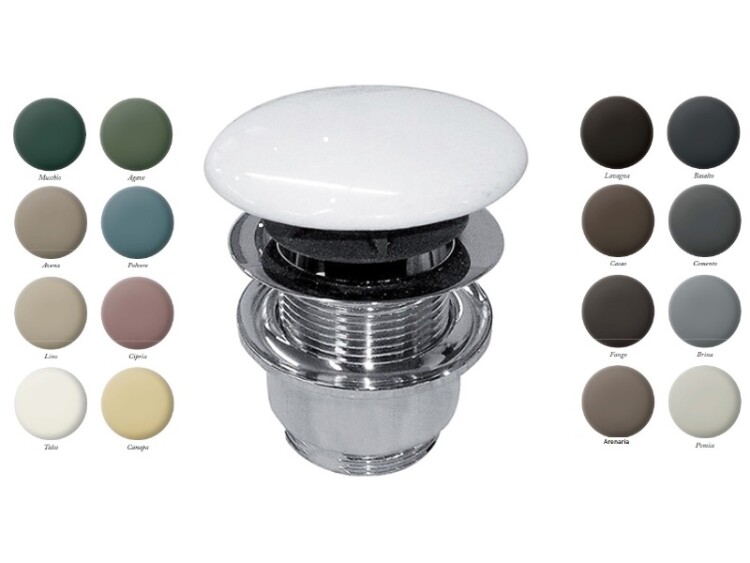 Донный клапан, CIELO, 1 1/4, диаметр, мм-72, универсальный, тип-Clic Clac, форма крышки-круглая, материал-латунь, с керамической крышкой, цвет-хром/Canapa Донный клапан, CIELO, 1 1/4, диаметр, мм-72, универсальный, цвет-хром/Canapa