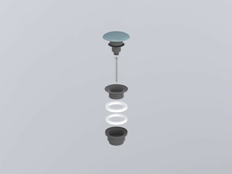 Донный клапан, CIELO, универсальный, Click Clack, 1 1/4", форма крышки-круглая, диаметр крышки, мм-72, материал крышки-керамика, отделка клапана-Cemento, цвет крышки-Polvere Донный клапан, CIELO, универсальный, 1 1/4", цвет-Cemento/Polvere