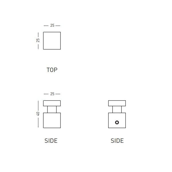 Крючок, Cielo, одинарный, ширина, мм-25, глубина, мм-40, высота, мм-25, тип установки-настенный, материал-латунь, цвет-черный матовый Крючок, Cielo, шгв 25*40*25, цвет-черный матовый