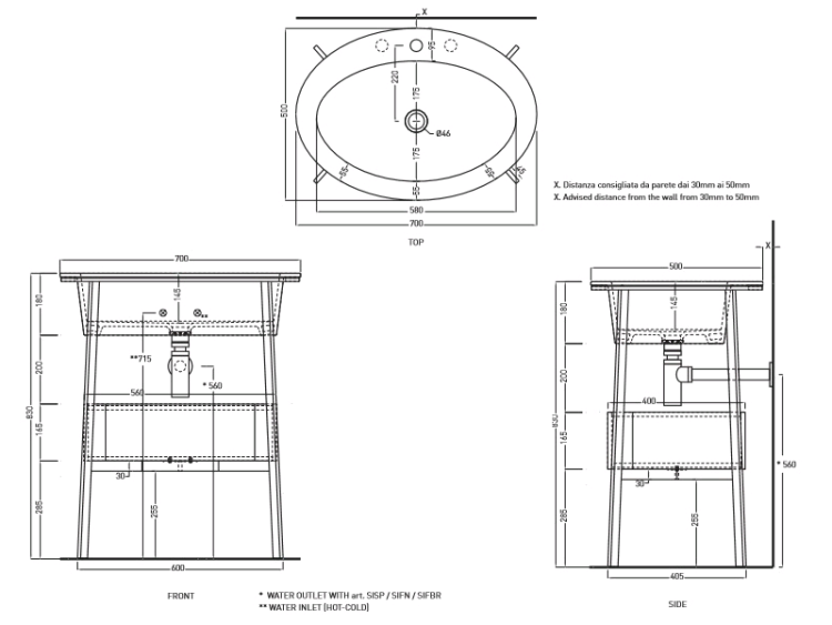 Раковина, CIELO, Catino Ovale, ширина, мм-700, глубина, мм-500, высота, мм-180, тип установки-на консоль, отверстия для смесителя-1, материал-керамика, цвет-Lavagna Раковина, CIELO, Catino Ovale, шгв 700*500*180, отверстия для смесителя-1, цвет-Lavagna