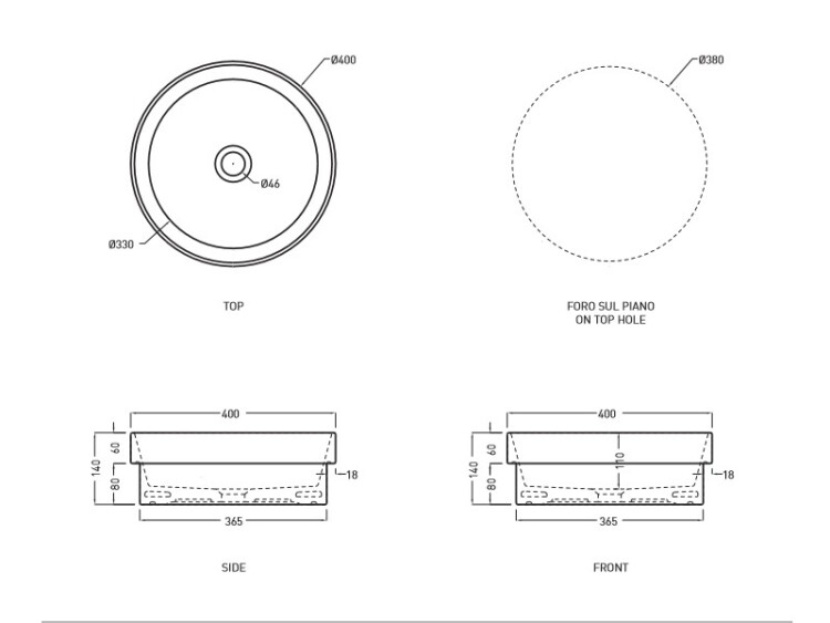 Раковина, CIELO, Enjoy, ширина, мм-400, глубина, мм-400, высота, мм-140, тип установки-полувстраиваемый, отверстия для смесителя-отсутствуют, материал-керамика, цвет-Brina, все стороны покрыты эмалью Раковина, CIELO, Enjoy, шгв 400*400*140, отверстия для смесителя-отсутствуют, цвет-Brina