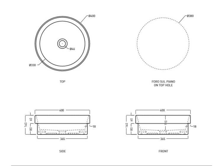 Раковина, CIELO, Enjoy, ширина, мм-400, глубина, мм-400, высота, мм-140, тип установки-полувстраиваемый, отверстия для смесителя-отсутствуют, материал-керамика, цвет-Gloss White, все стороны покрыты эмалью Раковина, CIELO, Enjoy, шгв 400*400*140, отверстия для смесителя-отсутствуют, цвет-Gloss White