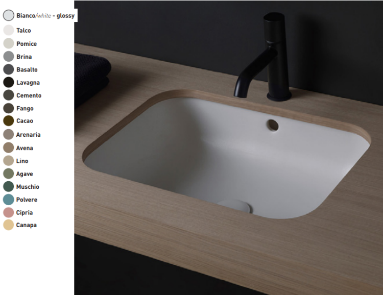 Раковина, CIELO, Enjoy, ширина, мм-415, глубина, мм-530, высота, мм-175, тип установки-встраиваемый, отверстия для смесителя-отсутствуют, перелив-есть, материал-керамика, цвет-Lavagna, одна сторона не покрыта эмалью Раковина, CIELO, Enjoy, шгв 415*530*175, отверстия для смесителя-отсутствуют, цвет-Lavagna
