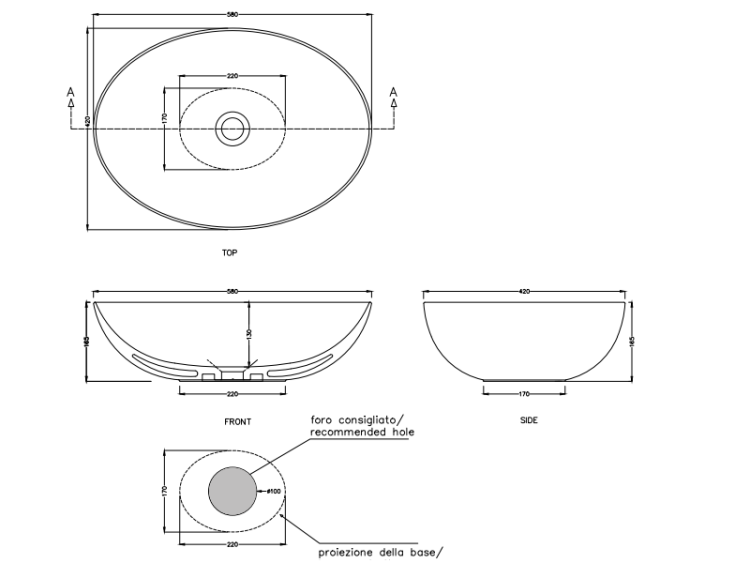 Раковина, CIELO, Le Bacinelle, ширина, мм-580, глубина, мм-420, высота, мм-165, тип установки-на столешницу, отверстия для смесителя-отсутствуют, цвет-Talco Раковина, CIELO, Le Bacinelle, шгв 580*420*165, отверстия для смесителя-отсутствуют, цвет-Talco