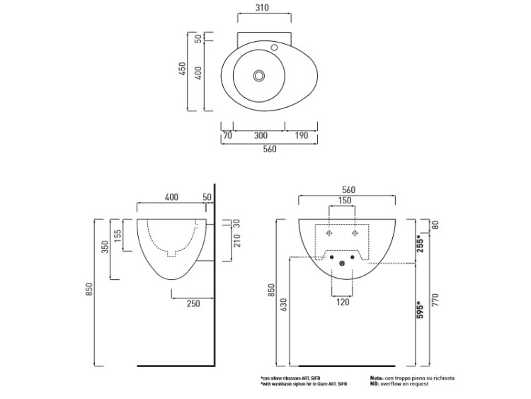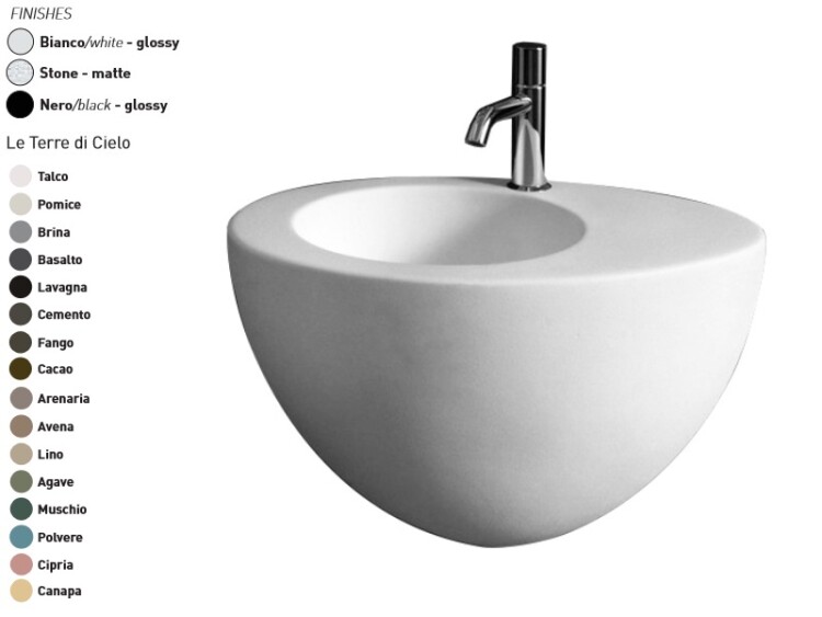 Раковина, CIELO, Le Giare, ширина, мм-560, глубина, мм-450, высота, мм-350, тип установки-подвесной, отверстия для смесителя-1, материал-керамика, крепления в комплекте, цвет-Gloss White, одна сторона не покрыта эмалью Раковина, CIELO, Le Giare, шгв 560*450*350, отверстия для смесителя-1, цвет-Gloss White