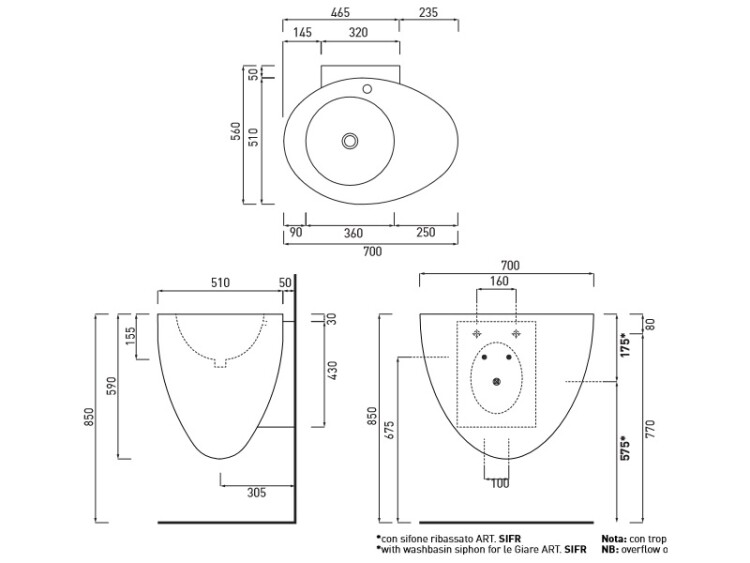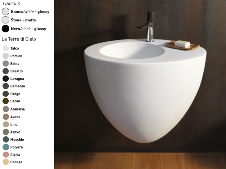 Раковина, CIELO, Le Giare, ширина, мм-700, глубина, мм-560, высота, мм-590, тип установки-подвесной, отверстия для смесителя-1, материал-керамика, крепления в комплекте, цвет-Talco, одна сторона не покрыта эмалью Раковина, CIELO, Le Giare, шгв 700*560*590, отверстия для смесителя-1, цвет-Talco