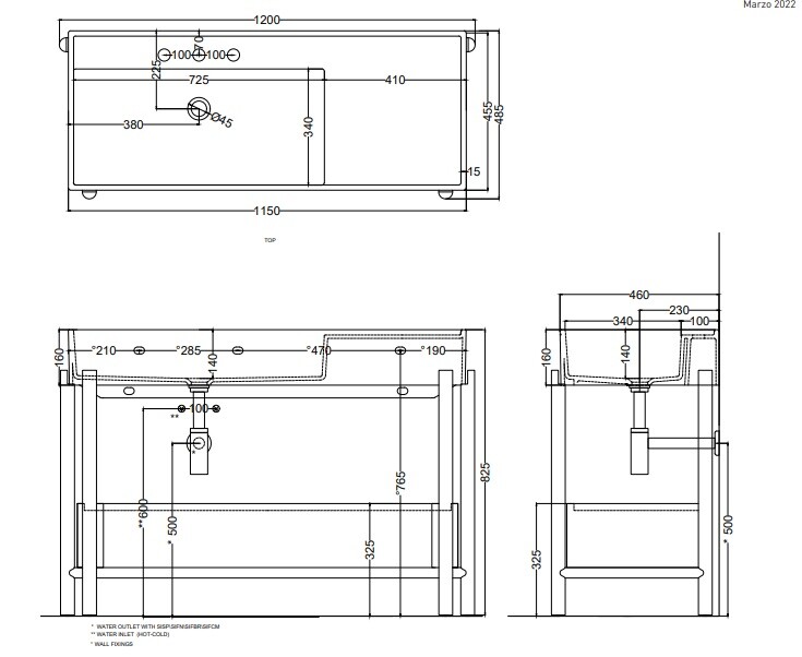 Раковина, CIELO, Plinio, ширина, мм-1150, глубина, мм-460, высота, мм-160, тип установки-подвесной/накладной, отверстия для смесителя-1, без перелива, материал-керамика, цвет-Polvere Раковина, CIELO, Plinio, шгв 1150*460*160, отверстия для смесителя-1, цвет-Polvere