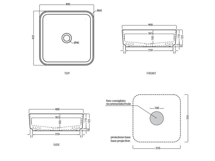 Раковина, CIELO, Shui Comfort, ширина, мм-400, глубина, мм-400, высота, мм-125, тип установки-на столешницу, отверстия для смесителя-отсутствуют, материал-керамика, цвет-Talco, квадратная, все стороны покрыты эмалью Раковина, CIELO, Shui Comfort, шгв 400*400*125, отверстия для смесителя-отсутствуют, цвет-Talco