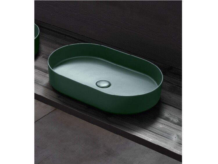 Раковина, CIELO, Shui Comfort, ширина, мм-600, глубина, мм-380, высота, мм-125, тип установки-на столешницу, отверстия для смесителя-отсутствуют, материал-керамика, цвет-Muschio, овальная, все стороны покрыты эмалью Раковина, CIELO, Shui Comfort, шгв 600*380*125, отверстия для смесителя-отсутствуют, цвет-Muschio
