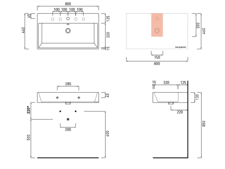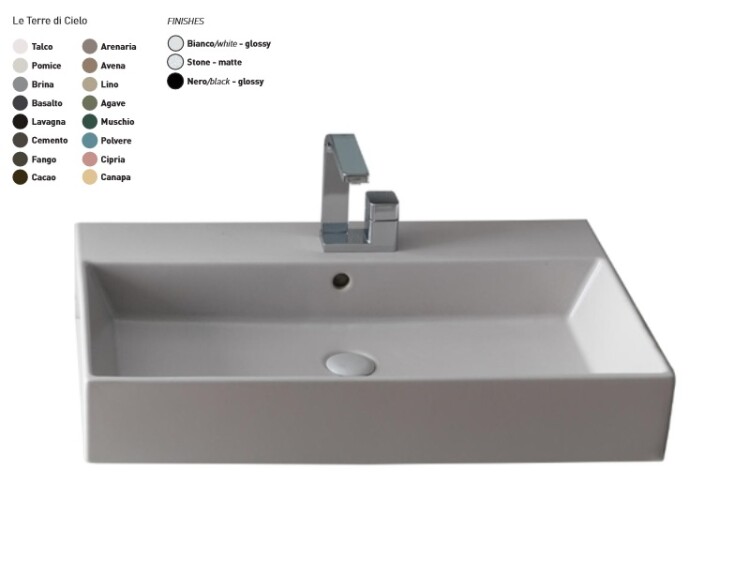 Раковина, CIELO, Smile, ширина, мм-800, глубина, мм-460, высота, мм-130, тип установки-подвесной, отверстия для смесителя-1, перелив-есть, материал-керамика, крепления в комплекте, цвет-Talco, прямоугольная Раковина, CIELO, Smile, шгв 800*460*130, отверстия для смесителя-1, цвет-Talco