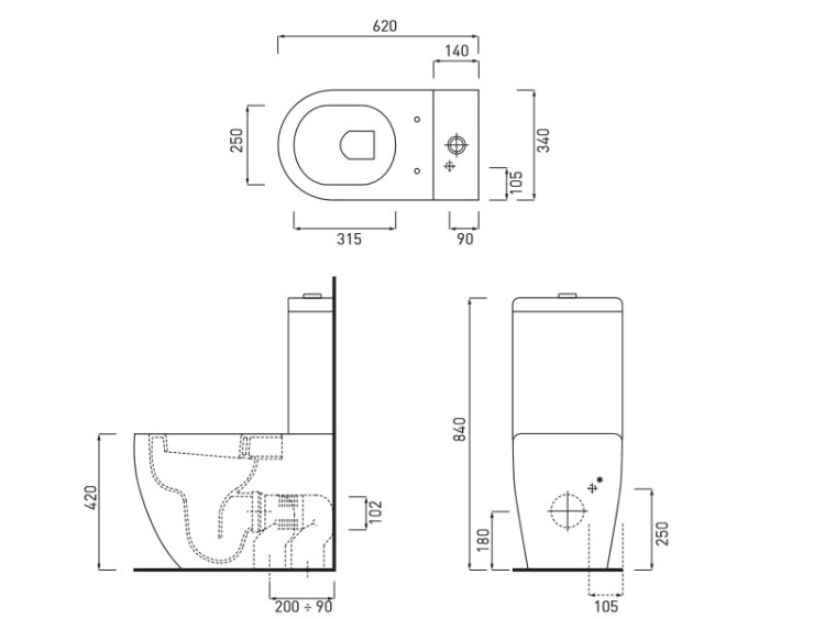 Сливной бачок, CIELO, Smile Mini, ширина, мм-340, глубина, мм-140, высота, мм-420, объем сливного бачка, л-4.5, материал-керамика, цвет-Basalto, моноблочный, с крышкой Сливной бачок, CIELO, Smile Mini, шгв 340*140*420, цвет-Basalto