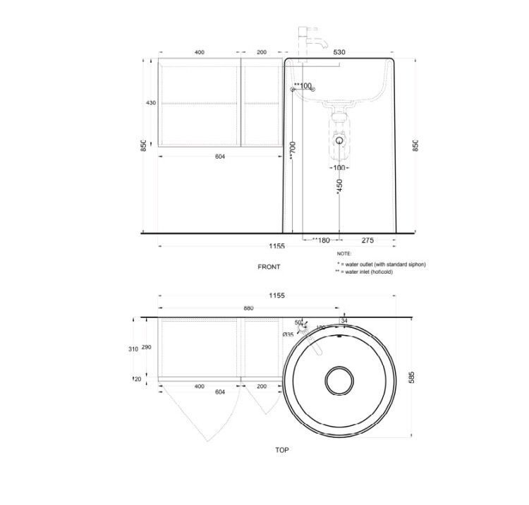 | Вырез под раковину | один |
