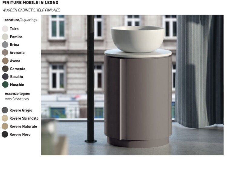 Тумба под раковину, CIELO, Tiberino, ширина, мм-500, глубина, мм-500, высота, мм-630, тип установки-напольный, форма мебели-цилиндрическая, раковина-необходимо заказать, консоль/столешница-необходимо заказать, дверцы-есть, открывание-распашное, цвет-Arenaria, отдельностоящая, со сливом в пол Тумба под раковину, CIELO, Tiberino, шгв 500*500*630, раковина-необходимо заказать, цвет-Arenaria