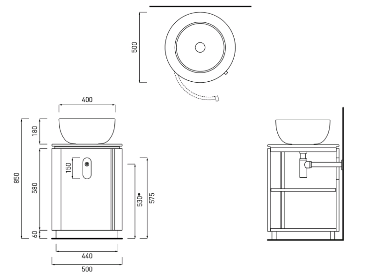Тумба под раковину, CIELO, Tiberino, ширина, мм-500, глубина, мм-500, высота, мм-630, тип установки-отдельностоящий, форма мебели-цилиндрическая, раковина-необходимо заказать, консоль/столешница-необходимо заказать, дверцы-есть, открывание-распашное, цвет-Pomice, со сливом в стену Тумба под раковину, CIELO, Tiberino, шгв 500*500*630, раковина-необходимо заказать, цвет-Pomice