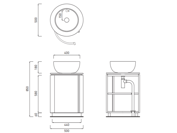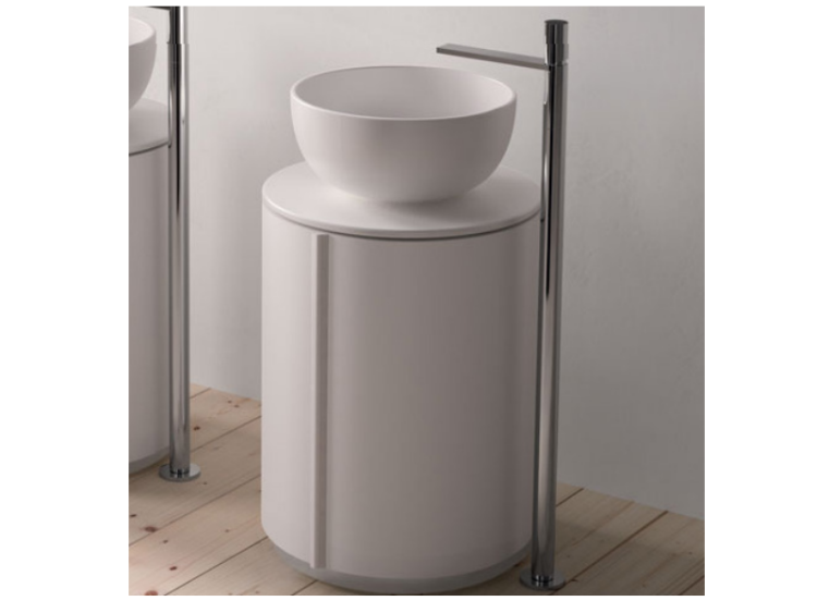Тумба под раковину, CIELO, Tiberino, ширина, мм-500, глубина, мм-500, высота, мм-630, тип установки-отдельностоящий, форма мебели-цилиндрическая, раковина-необходимо заказать, консоль/столешница-необходимо заказать, дверцы-есть, открывание-распашное, цвет-Rovere Nero, со сливом в пол Тумба под раковину, CIELO, Tiberino, шгв 500*500*630, раковина-необходимо заказать, цвет-Rovere Nero