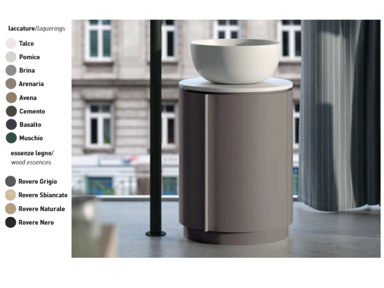 Тумба под раковину, CIELO, Tiberino, ширина, мм-500, глубина, мм-500, высота, мм-630, тип установки-отдельностоящий, форма мебели-цилиндрическая, раковина-необходимо заказать, консоль/столешница-необходимо заказать, дверцы-есть, открывание-распашное, цвет-Talco, со сливом в пол Тумба под раковину, CIELO, Tiberino, шгв 500*500*630, раковина-необходимо заказать, цвет-Talco