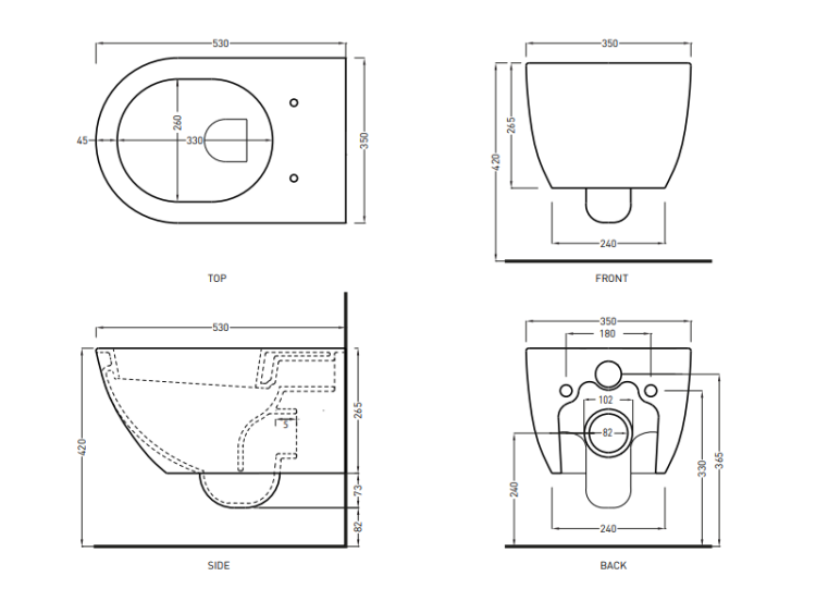 | Бачок | необходима система инсталляции, скрытый бачок |