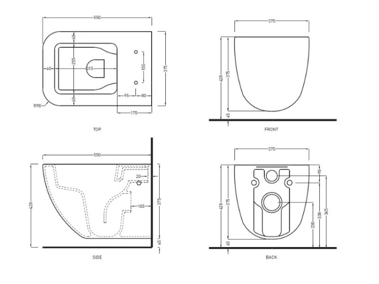 | Бачок | необходима система инсталляции, скрытый бачок |