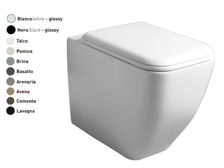 Унитаз, CIELO, Shui Comfort, безободковый, тип установки-приставной, ширина, мм-540, глубина, мм-375, высота, мм-440, форма чаши-прямоугольная, материал-керамика, сиденье-необходимо заказать, крепления в комплекте, цвет-Cemento, бифункциональный с адаптируемым выпуском Унитаз, CIELO, Shui Comfort, приставной, шгв 540*375*440, цвет-Cemento