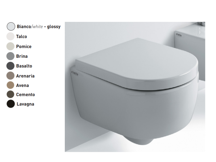 Унитаз, CIELO, Smile Mini, безободковый, тип установки-подвесной, ширина, мм-340, глубина, мм-480, высота, мм-260, форма чаши-овальная, материал-керамика, сиденье-необходимо заказать, крепления в комплекте, цвет-Basalto Унитаз, CIELO, Smile Mini, подвесной, шгв 340*480*260, цвет-Basalto