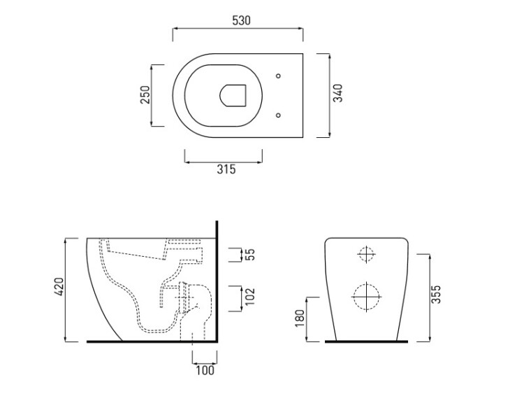 | Бачок | необходима система инсталляции, скрытый бачок |