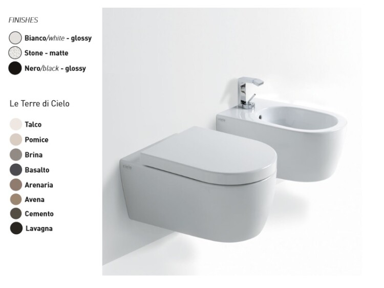 Унитаз, CIELO, Smile, безободковый, тип установки-подвесной, ширина, мм-340, глубина, мм-530, высота, мм-270, форма чаши-овальная, материал-керамика, сиденье-необходимо заказать, крепления в комплекте, цвет-Arenaria Унитаз, CIELO, Smile, подвесной, шгв 340*530*270, цвет-Arenaria