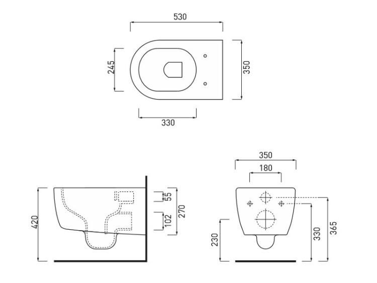 | Бачок | необходима система инсталляции, скрытый бачок |