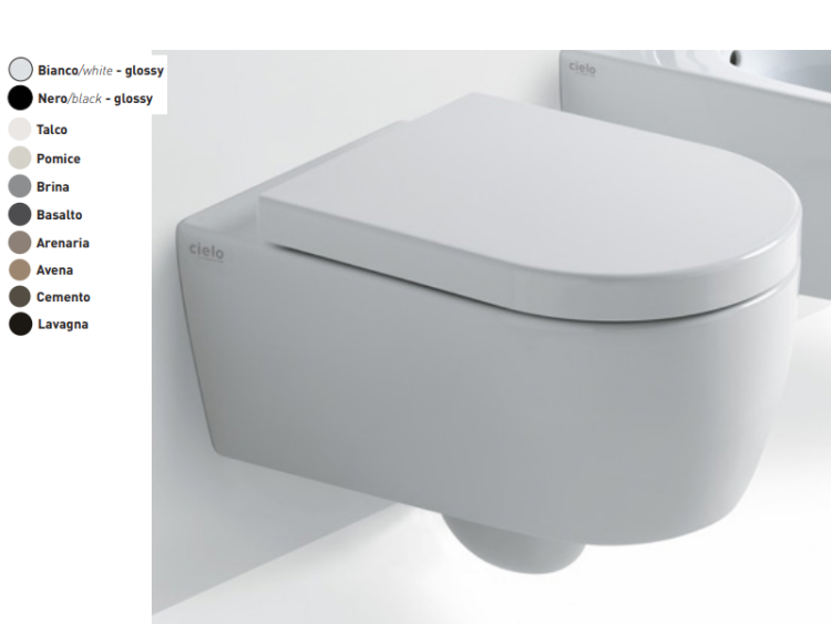 Унитаз, CIELO, Smile, тип установки-подвесной, ширина, мм-340, глубина, мм-530, высота, мм-270, форма чаши-овальная, материал-керамика, сиденье-необходимо заказать, крепления в комплекте, цвет-Pomice Унитаз, CIELO, Smile, подвесной, шгв 340*530*270, цвет-Pomice