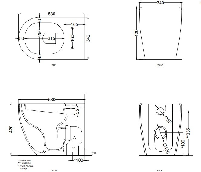 Унитаз, CIELO, Smile, традиционный (с закрытым смывным краем), тип установки-приставной, ширина, мм-340, глубина, мм-530, высота, мм-420, форма чаши-овальная, выпуск-горизонтальный, при помощи технического колена трансформируется на слив в пол, материал-керамика, сиденье-необходимо заказать, крепления в комплекте, цвет-Cemento Унитаз, CIELO, Smile, напольный, шгв 340*530*420, цвет-Cemento