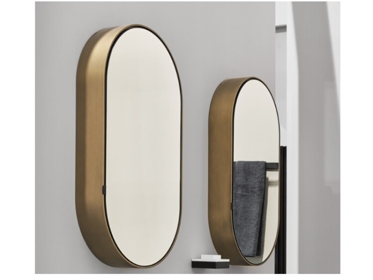 Зеркальный шкаф, CIELO, I Catini, ширина, мм-500, глубина, мм-120, высота, мм-900, тип установки-настенный, дверцы-есть, открывание дверей-распашное, цвет корпуса-Brushed Bronze, овальный Зеркальный шкаф, CIELO, I Catini, шгв 500*120*900, цвет корпуса-Brushed Bronze