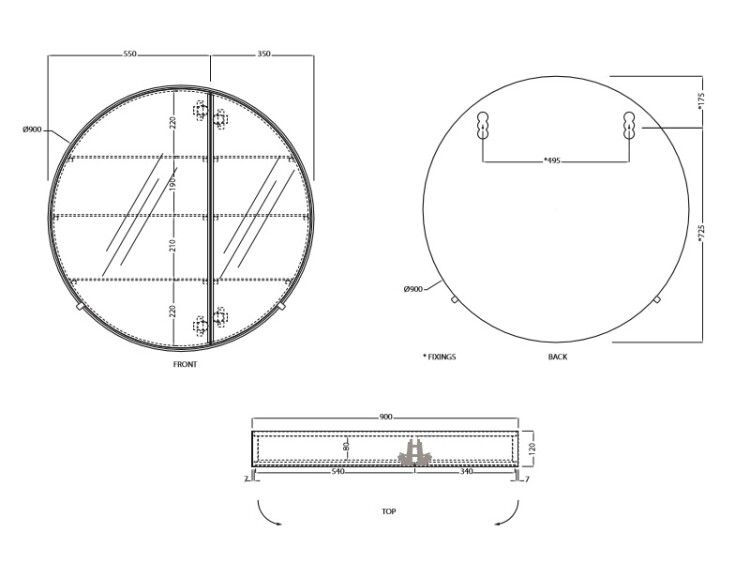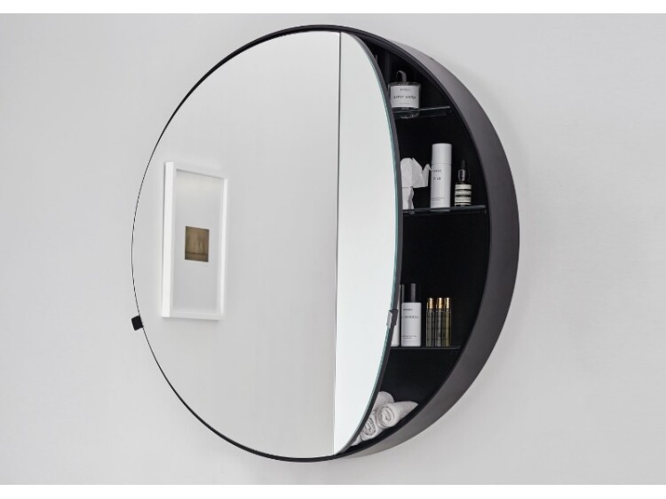 Зеркальный шкаф, CIELO, I Catini, ширина, мм-900, глубина, мм-120, высота, мм-900, тип установки-настенный, дверцы-есть, открывание дверей-распашное, цвет корпуса-Matt Black, круглый Зеркальный шкаф, CIELO, I Catini, шгв 900*120*900, цвет корпуса-Matt Black