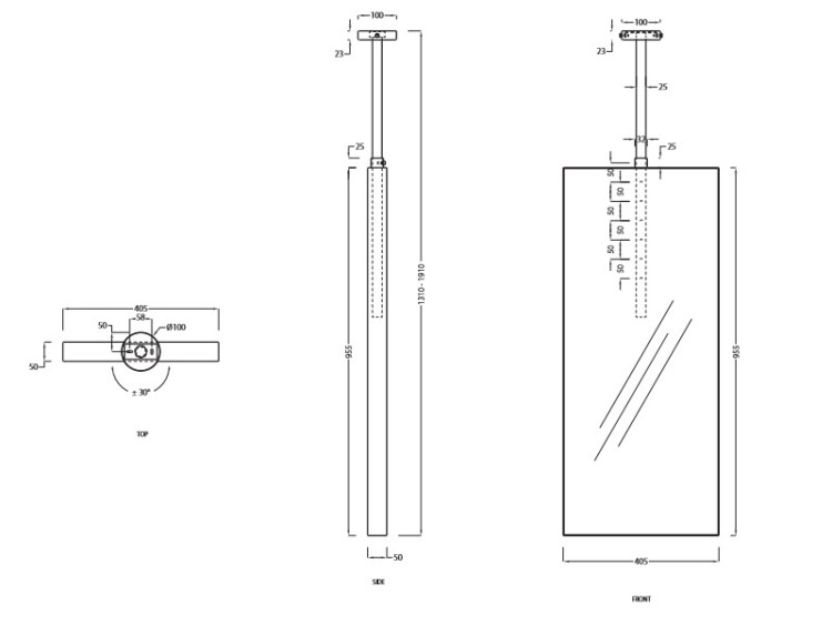 Зеркало, CIELO, Arcadia, Argo, ширина, мм-400, высота, мм-1300-1900, тип установки-потолочный, рама-есть, цвет-Matte Black, телескопическое, регулируемая штанга,мм-50*50 Зеркало, CIELO, Arcadia, Argo, шв 400*1300-1900, цвет-Matte Black