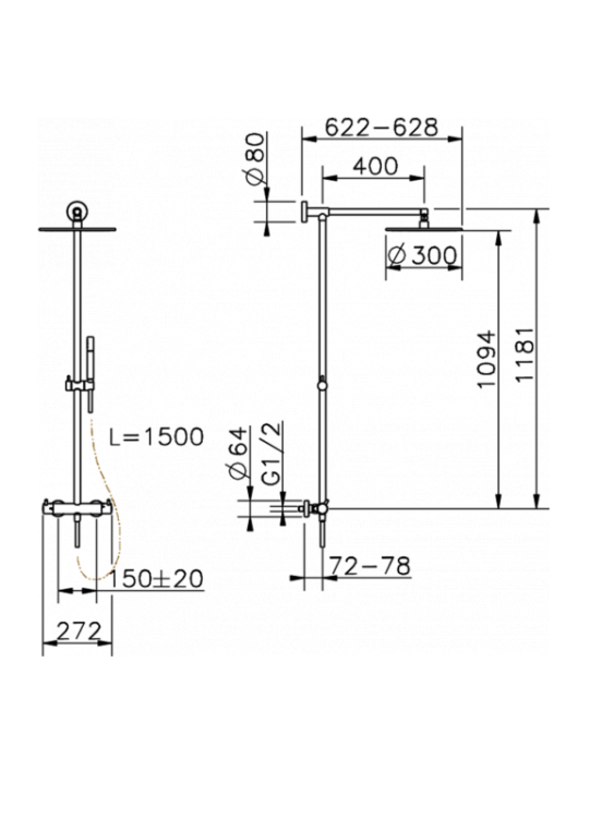 | Размер верхнего душа, мм | 300 |