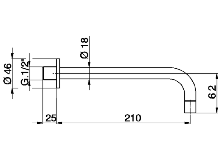 Излив, Cisal, тип установки-настенный, вынос излива, мм-210, стандарт подводки-1/2", цвет-Nero Opaco Излив, Cisal, цвет-Nero Opaco